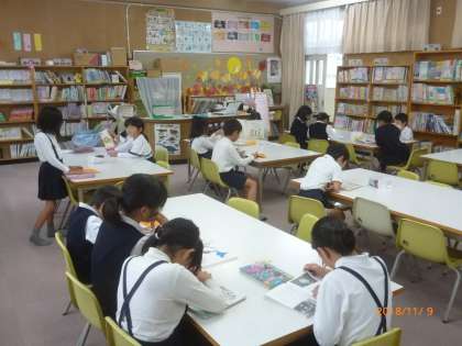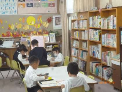 ようやく雨があがりました。20分休みの図書室の様子です。