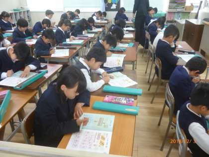 3年生の「そろばん学習」の様子です。外部講師の方にご指導いただきました。明日も学習します。