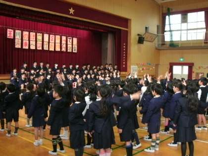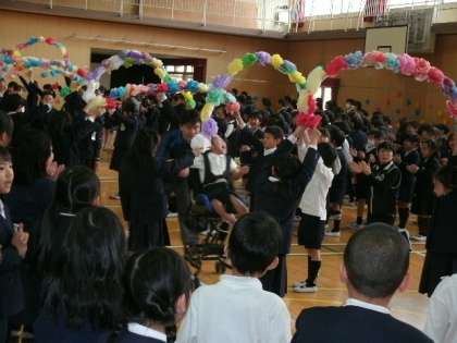 1〜5年生の皆さんが、6年生の卒業をお祝いしました。