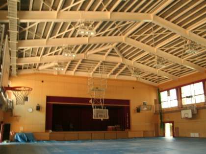 7月から取り掛かっていた天井工事がやっと完成しました。8月29日に検査を受けて、9月1日の始業式から、講堂を使うことができます。みんなの元気な顔を見るのを楽しみにしています。