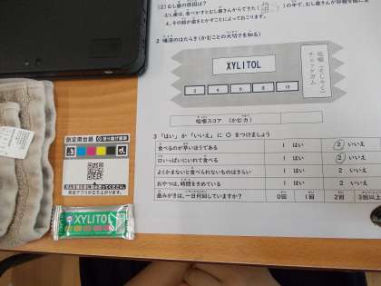 9月12日、歯磨き指導、フッ化物洗口、咀嚼チェックを行いました。