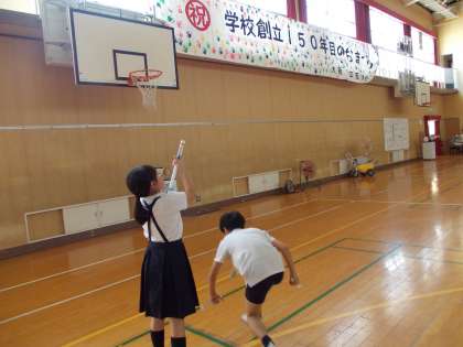 タブレットで、空気が押し縮められる様子を動画で撮り、観察しています。