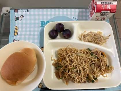 1年生はぶどうが思ってより大きかったらしく驚いていました。またオイスターソース焼きそばは、コクや甘みがある焼きそばで違う味を楽しんでくれました。