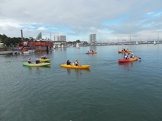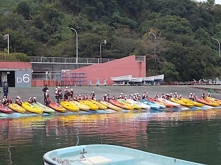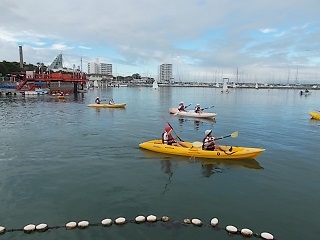 二人乗りのカヌー体験!二人の呼吸を合わせるのが大事です。