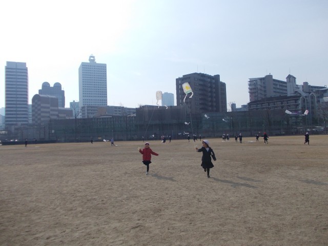 1年生の子どもたちが、2月6日(金)に下福島グランドで凧あげをしました。
