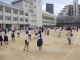 3時間目は、1・3・5年生の親子ふれあい広場でした。、雨が降り始めていたので雨...