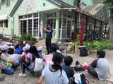 飯盒炊飯のための食材探しが始まりました。宿舎の方の説明を聞き、各班で必死なって探...
