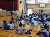 朝の集いを終え、これからカートンドッグづくりを行います。美味しい朝食づくりを楽し...