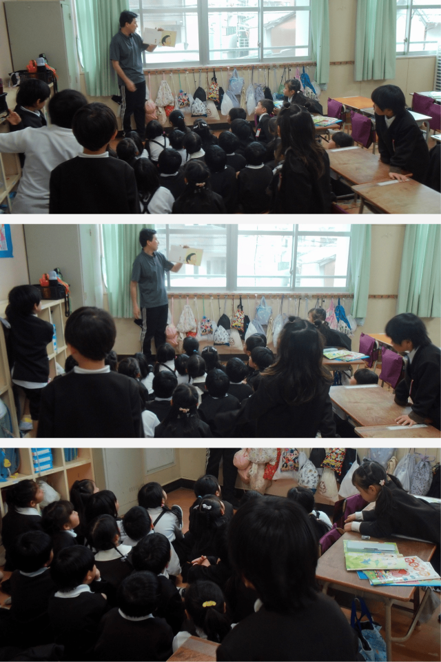1年生では、絵本の読み聞かせを行いました。