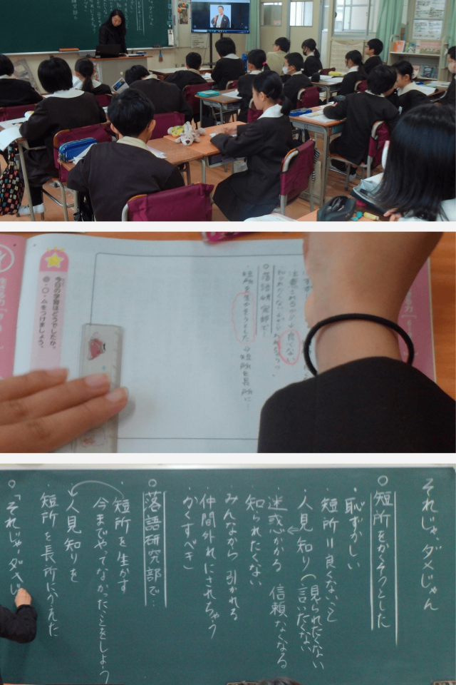 子どもたちは、資料を読みながら、「もっとよくなりたい」「今のままではいけない」という前向きな気持ちや、自分自身を見つめ直そうとする思いがあるのではないかと、意見を出し合っていました。