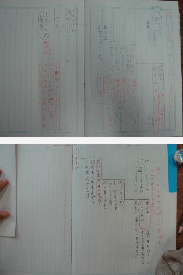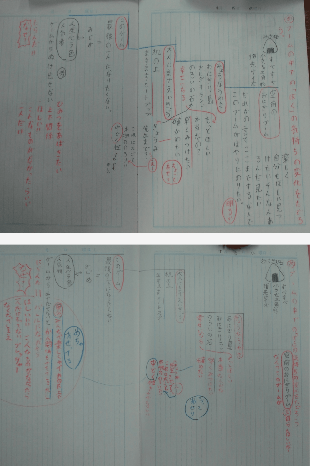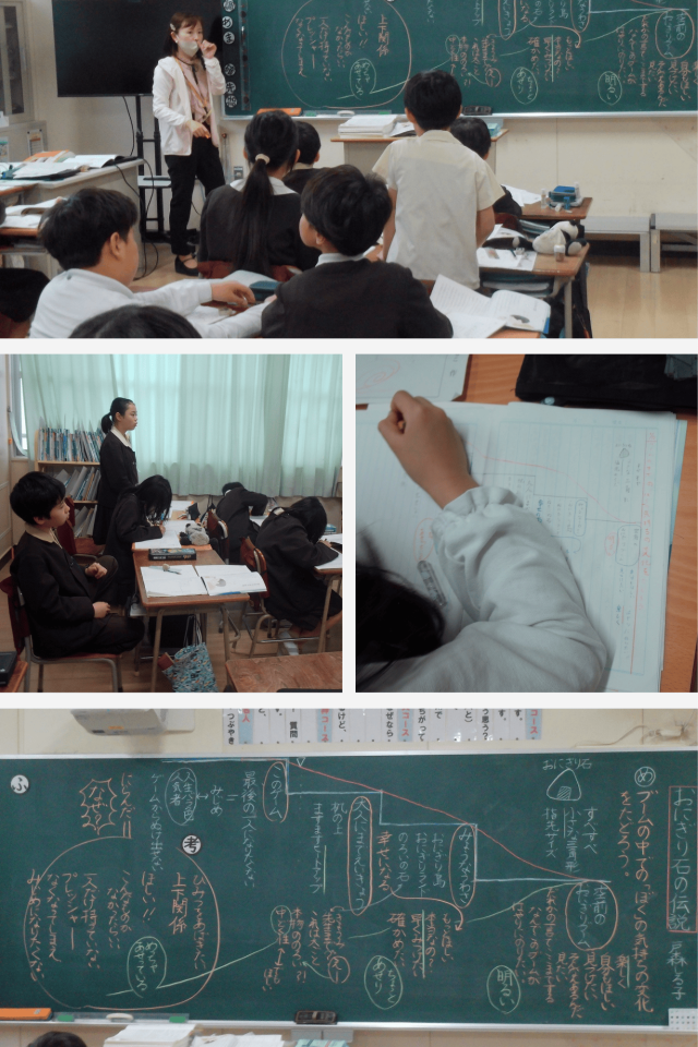 この学習では、物語の中で起こる“おにぎり石ブーム”に注目し、その中での「ぼく」の気持ちがどのように変化していくのかを読み取ることをめあてにしました。