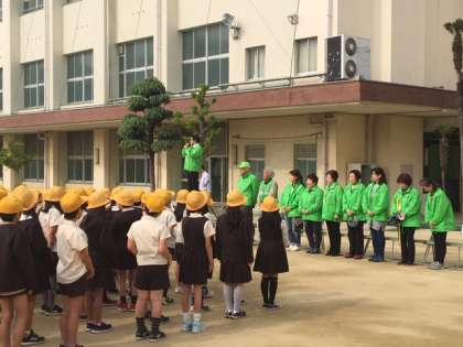 地域の見守り隊の方々に来ていただき