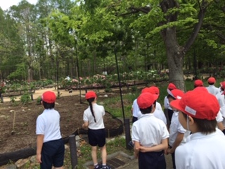 自然史博物前に荷物を置いて、植物園内を観て回っています。ちょうど、理科で春の生き物を飼う学習しているところです。いい体験になりそうです。