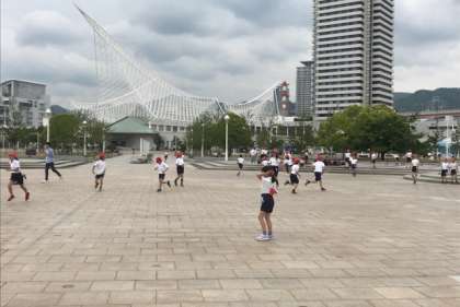 食後はメリケパークで鬼ごっこをして遊んだり、海を見てまどろんだりしています。