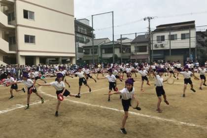 午前中最後のプログラムは5年生の表現運動(民謡)、