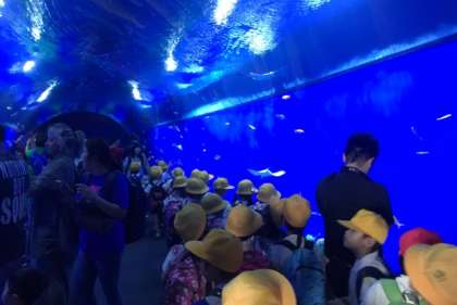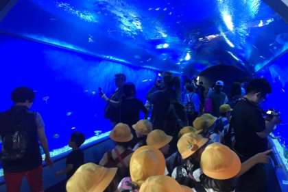 まずは、アクアゲートをくぐります。一面、ブルーの世界です。