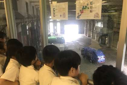 プラットホームにはひっきりなしにパッカー車が入ってきます。24時間で400から500台ものパッカー車が西淀工場に入ってくるそうです。
