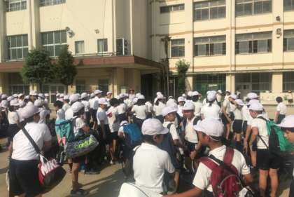 昼からちょっと天気が心配ですが、みんな元気に学校を出発しました。