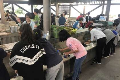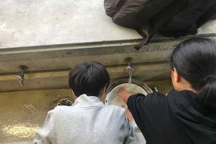 ごはん係は、お米を洗っています。ザルを使って洗っているので、溢れる心配はないですね。