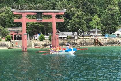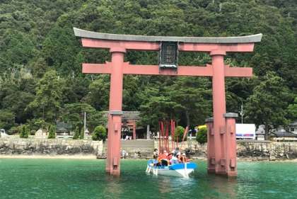 A班、鳥居をくぐりました。