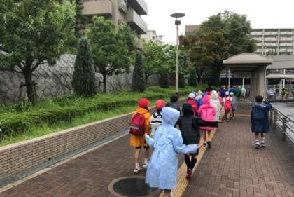 念のためにカッパを着たのですが、出発降る頃にはもう止んでしまいました。ラッキーな子どもたちです。
