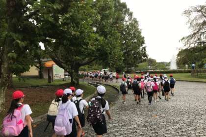 自然文化園を歩き、国立民族学博物館に向かっています。