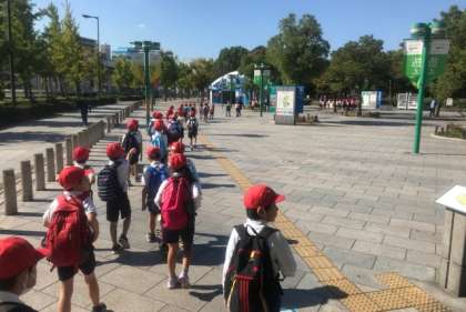 絶好の秋晴れ。2年生は八幡屋公園に校外学習に出かけました。さ