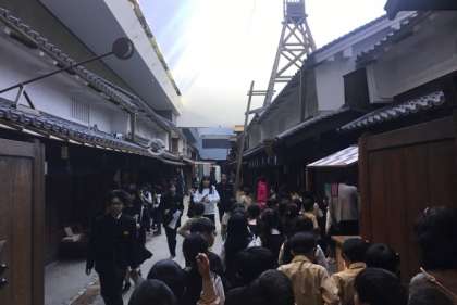 ?江戸時代の街並みを見学しています。