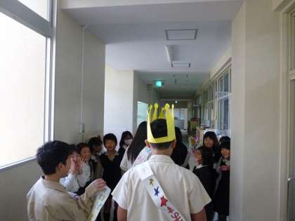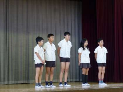 1.よびかけ2.ビデオ放送3.ポスター4.挨拶巡視の4つのグループに分かれて挨拶の大切さについて発表をし、取組後には、挨拶をすすんでする児童が増えました。これを機に、これからも気持ちの良い挨拶を続けてほしいと思います。