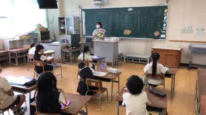 そのあと、先週の課題を点検したり、課題として出されていた国語「風のゆうびんやさん」の音読を、デジタル教科書を使っておさらいしたりして過ごしました。