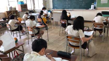 教室に戻ってからは、課題プリント冊子を進めたり、少し難しい内容について、先生に開設をしてもらったりして学習を進めていました。