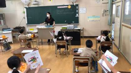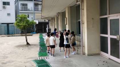 3年生は、持ってきたものをみんなで確認し、答えあわせをするだけでなく、後半は学級で少し時間をずらし、聴力検査をしたり、教室掲示に使う写真をタブレットパソコンで撮ったり、リズムステップなど、簡単な運動をしたりして時間を過ごしました。