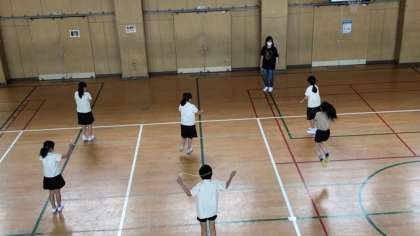 5年生も、前半は学級で時間をずらして、聴力検査と簡単な運動に取り組みました。