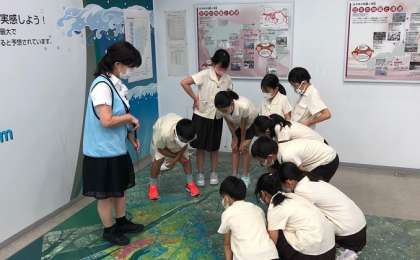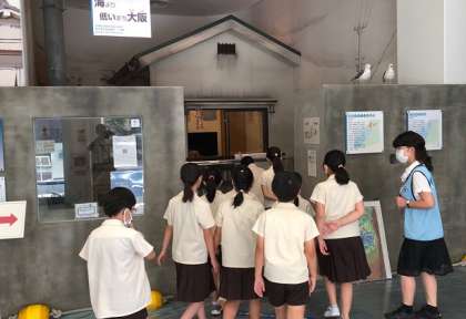 4年生は、2学期になって「自然災害から人々のくらしを守る」というテーマで学習を始めました。今日は、その一環として、阿波座にある「津波・高潮ステーション」の見学に行きました。津波・高潮ステーションでは、かつて大阪を襲った高潮や、近い将来必ず大阪を襲うと言われている東南海・南海地震と津波についての正しい知識を学び、地震、津波発生時の対応などが学べる施設です。