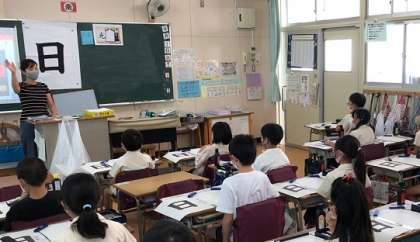 3年生の国語(書写)の授業です。3年生から新しく始まった学習の1つが、毛筆書写です。今日は「日」が課題です。