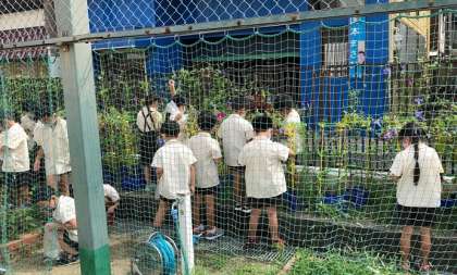 1年生の生活科の学習です。今回は休業中にお家で種を植えたアサガオですが、学校が再開されてからは、毎日水をやって育ててきました。今日は種を採っています。