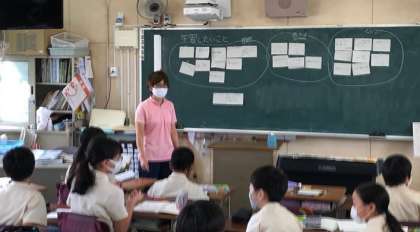 5年生の社会科の学習です。農業の学習を終え、今日から水産業の学習を始めていきます。単元を通した学習問題を定めた後、疑問を出し合い、これから学習したいことを分類していました。「種類」「困っているなやみ」「工夫」などに分類できたようです。