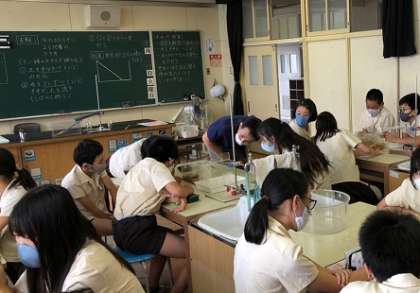 理科室は空調がなく、扇風機やスポットクーラーで暑さをしのぎながら、がんばって実験しています。