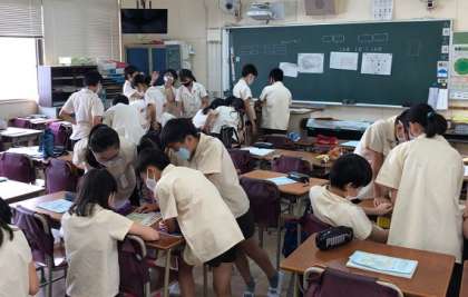 3年生の図工の学習です。今日から紙版画の制作です。まずは、作品のテーマや紙版画のしくみなどを先生から教えてもらっています。