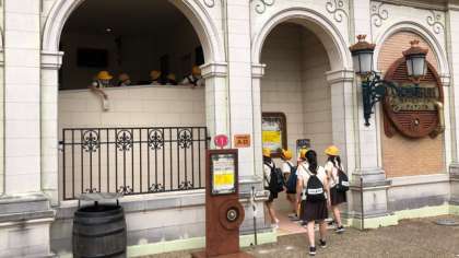 まずは、食事場所から一番近いアトラクション、「室内コースター アイアンブル」に行くグループが多いようです。