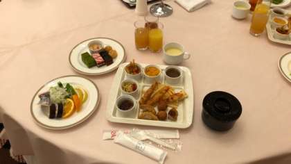 夕食タイムです。本来はビュフェ形式ですが、プレート個々盛りでの対応していただいています。けっこう量があります。