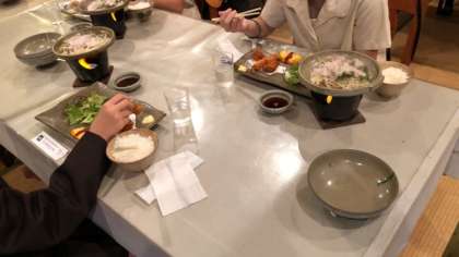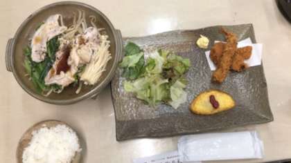 メインは豚肉の陶板焼き。器は当然、信楽焼です。