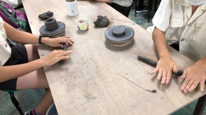 1組、2組も土台が出来上がり、紐作りを積み重ねている子が多くなってきました。