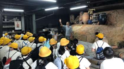 3組は作品を完成させ、後回しにしていた登り窯の説明を聞いています。