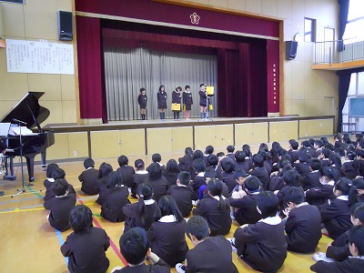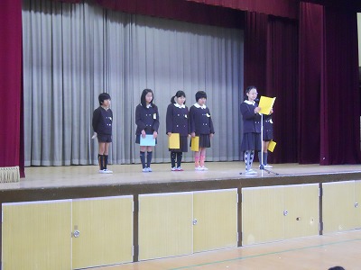 今日の始業式は4年生が代表して、3学期がんばりたいことを発表しました。
