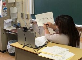 現在算数で学習している「比」について復習問題を解いたり、デジタル教科書の画面をWEBカメラで映してみたり、いろいろ試してみました。