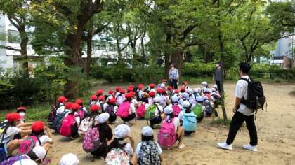到着しました。これから靱公園に隣接している大阪科学技術館を見学します。