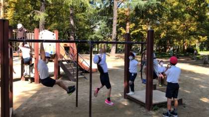学級ごとにローテーションして遊具でも遊んでいます。