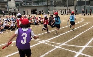 初めてのリレー。難しいバトンパスもがんばっていました。高学年らしくなってきた4年生でした。