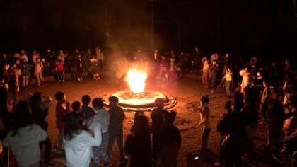 キャンプファイヤーが始まりました。盛り上がっています。